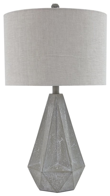 Две настольные лампы Ibby L235554 от бренда Ashley с граненой монолитной основой из искусственного бетона серого цвета. Модель имеет 3-позиционный переключатель, который позволяет легко изменять уровень яркости освещения.