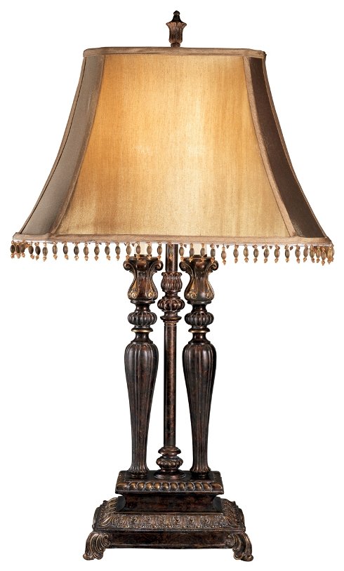 Две настольных лампы Desana L370974 с абажуром от Дома американской мебели Ashley Furniture для вашей спальни или гостиной. Модель имеет две проводные колонны, которые создают естественное освещение в шелковисто-бежевом оттенке. Изысканные детали и состаренная отделка создают вид старинного антиквариата.