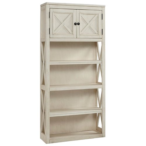 Книжный шкаф H647-17 прекрасно впишется в любую комнату вашем доме. Шкаф обладает 4-мя открытыми полками и 2-мя дверцами на верхнем уровне декорированными планками. Особой изящности книжному шкафу предает цвет слоновой кости.