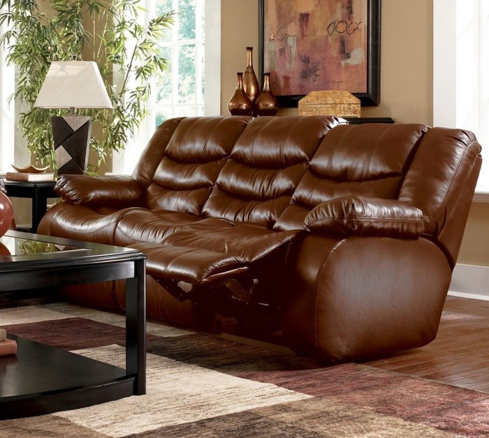 Американский диван трехместный с реклайнером Revolution-Saddle 91402-88 современный диван-реклайнер в шоколадной расцветке. Благодаря своей функциональности этот большой диван обеспечит Вам максимум комфорта и уюта. Данная модель изготовлена из прочных пород натурального дерева и обита натуральной кожей и экокожей. Элегантный дизайн этого дивана люкс подарит вашей гостиной шик и блекс и будет радовать Вас каждый день своей комфортабельностью и удобством.