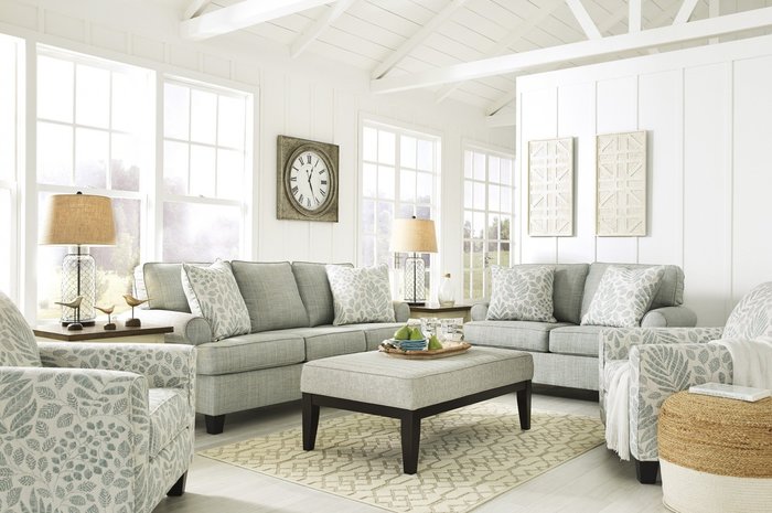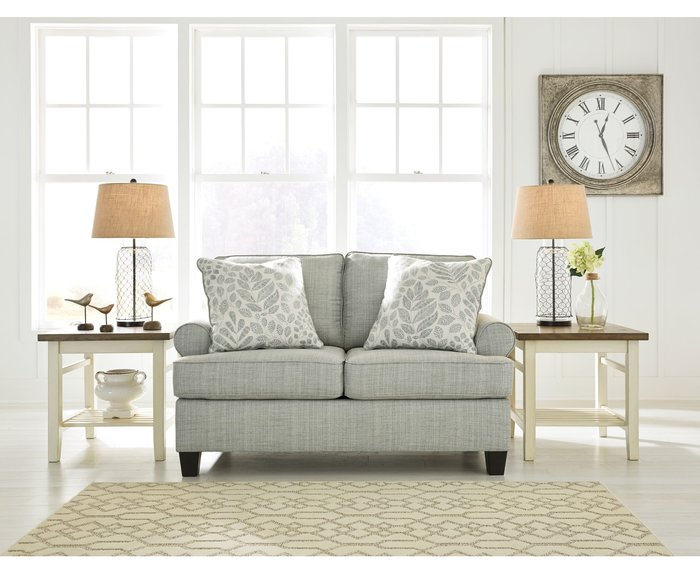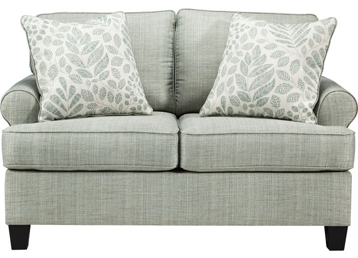 Двухместный диван KILARNEY 30201-35 от Дома американской мебели Ashley в загадочном нежно-бирюзовом тоне привнесет в ваш дом непринужденную атмосферу побережья. Изделие обтянуто красивой износостойкой и практичной мультитекстурной тканью. Каркас прочный и надежный, деревянные ножки конической формы максимально устойчивы.