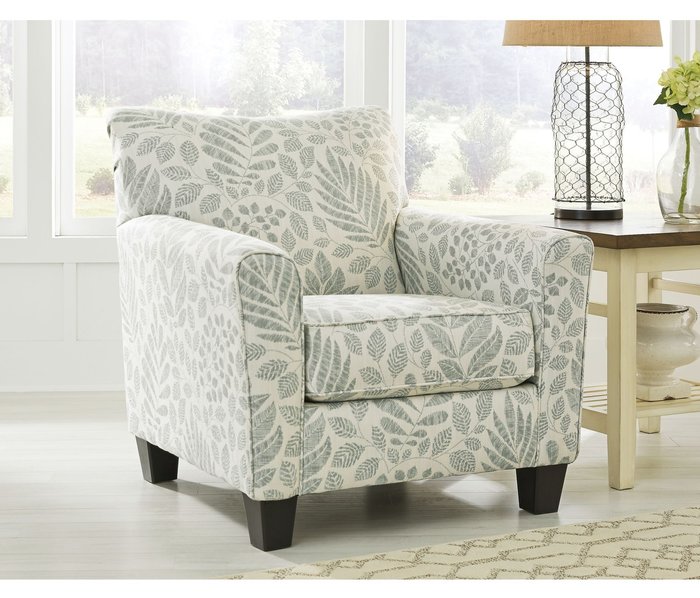 Кресло акцентное KILARNEY 30201-21 от Дома американской мебели Ashley в загадочном нежно-бирюзовом тоне с рисунком привнесет в ваш дом непринужденную атмосферу побережья. Изделие обтянуто красивой износостойкой и практичной мультитекстурной тканью. Каркас прочный и надежный, деревянные ножки конической формы максимально устойчивы.