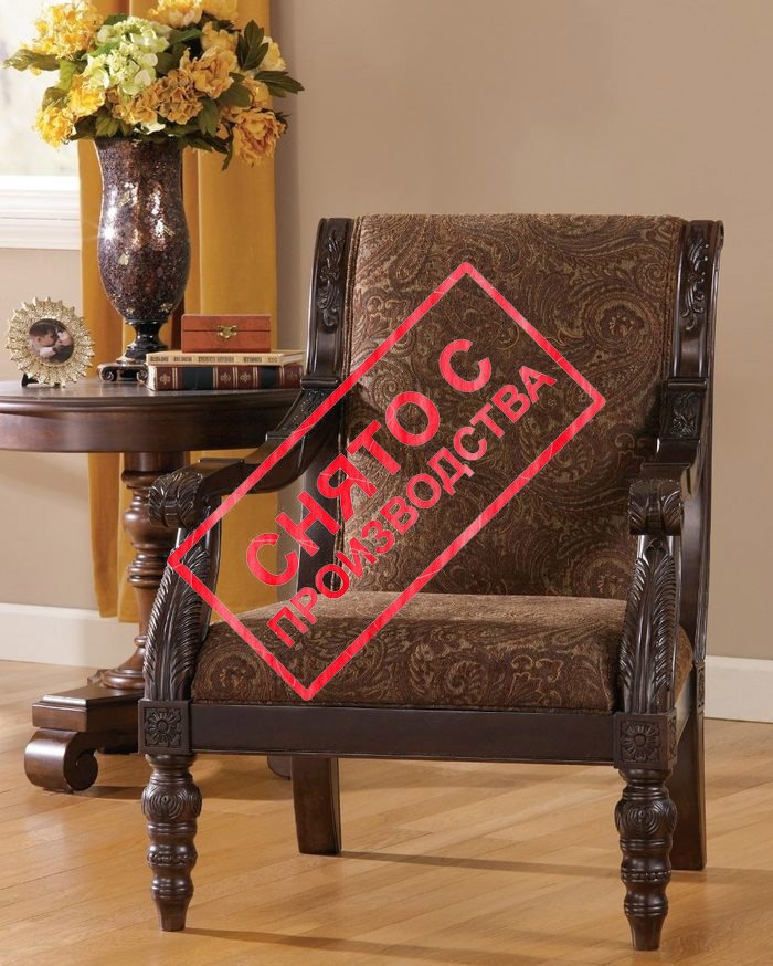 Американское кресло Bradington Truffle 15400-60 от американского производителя Ashley. Выполнено из массива дерева в темно коричневом цвете. Мягкие сидение и спинка обтянуты прочной, плотной тканью - шенилл, с орнаментом, в трюфельном цвете. Удобные эргономические подлокотники украшены резьбой.