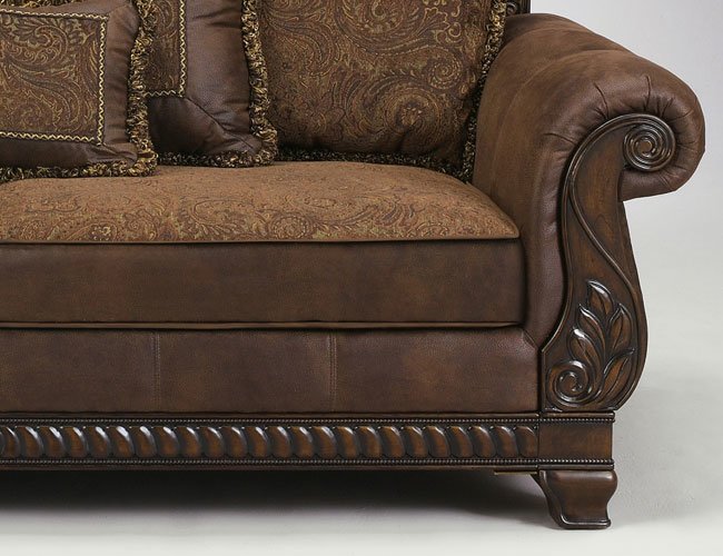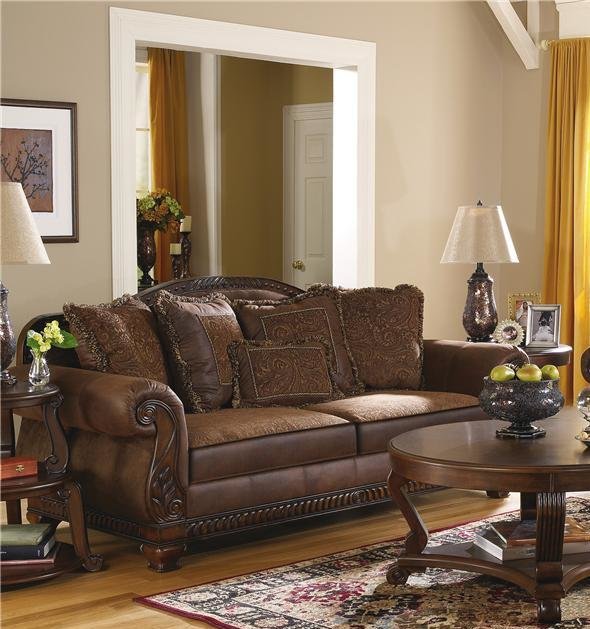 Американский диван трехместный Bradington Truffle U96900-38 - элитный американский классический диван. Такой роскошный дизайн большого дивана создаст в вашем интерьере особую уютную атмосферу. Этот американский диван люкс изготовлен из массива твердых пород дерева высокого качества и обит плотной тканью с красивым орнаментом - шенилл трюфельного цвета. Удобная глубокая посадка, две широкие подушки сидения со съемными чехлами. В качестве наполнителя сидений используется пенополиуретан. В комплект входит набор из 5-ти мягких подушек с изящным орнаментом.